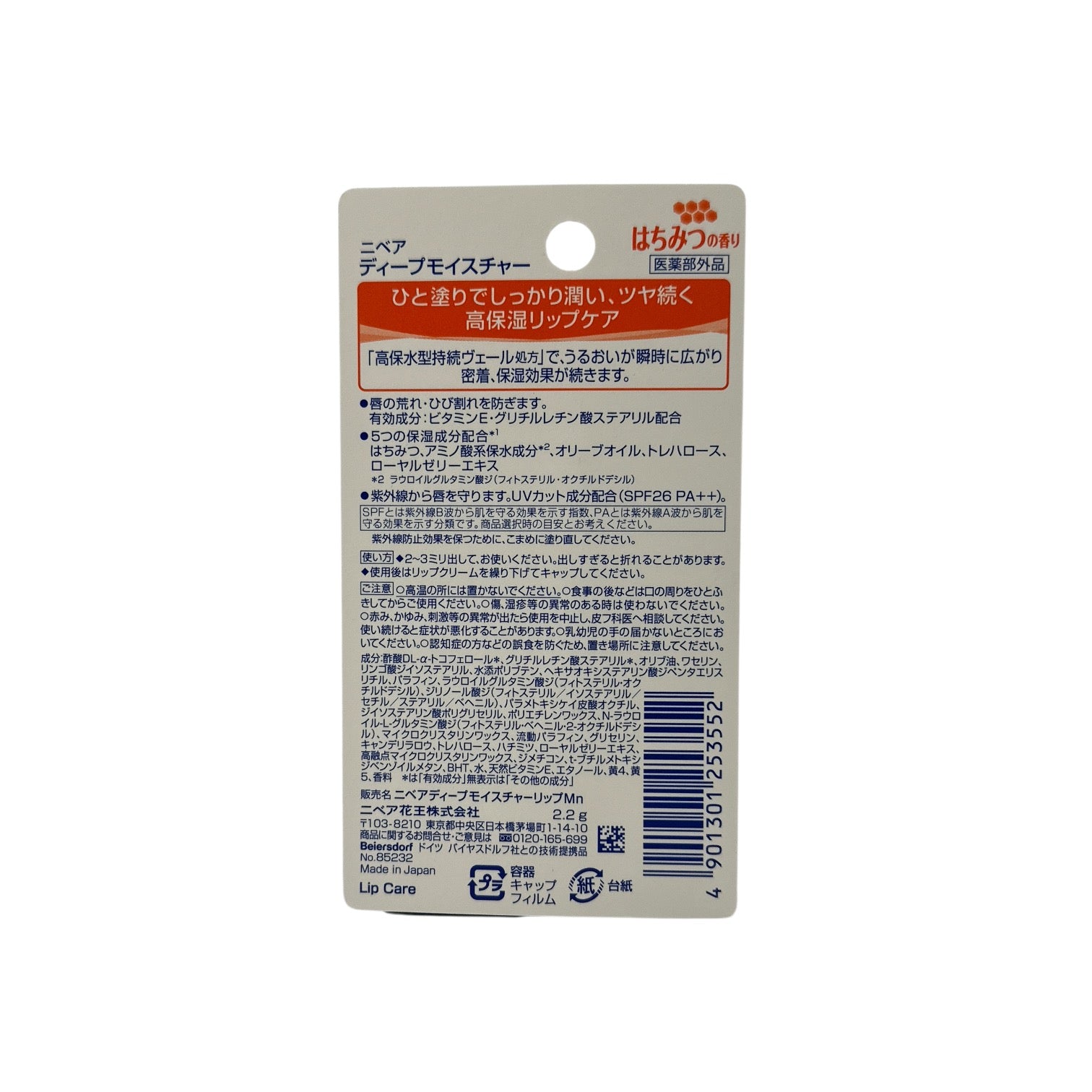 Nivea Deep Moisture Anti-UV Lip Balm - Honey Flavor 2.2g